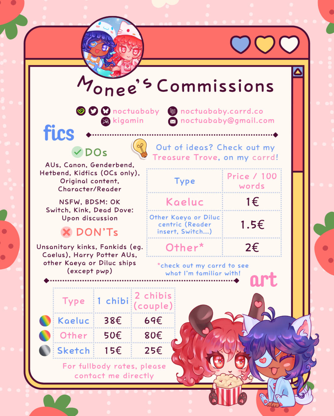 | Other Kaeya or Diluc centric fics (Reader insert, switch...) | 1.5€ |
